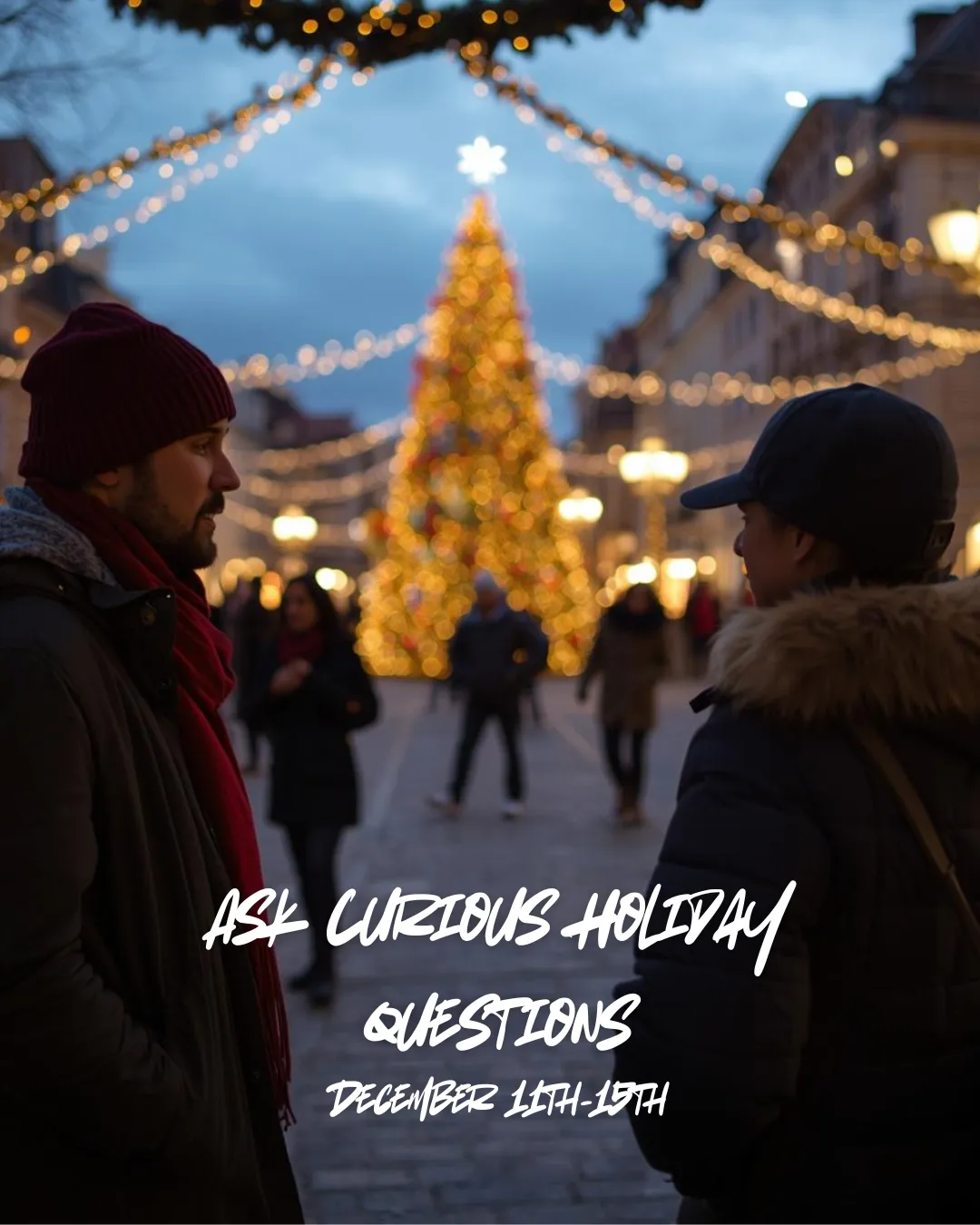 Ask Curious Questions about the Holidays: – Grow in your conversation skills by intentionally asking people questions about the holidays that lead to further conversations about what it means to you.